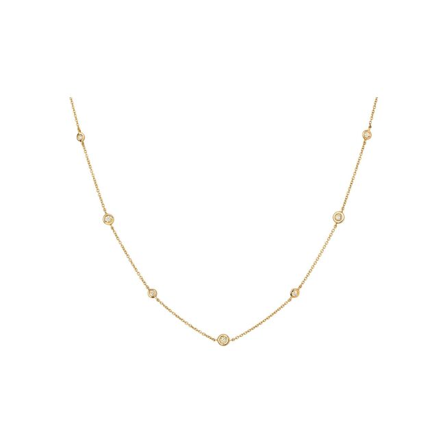 Collier en or jaune de 42 cm avec 11 diamants (0,37 ct) sertis clos sur chaîne
