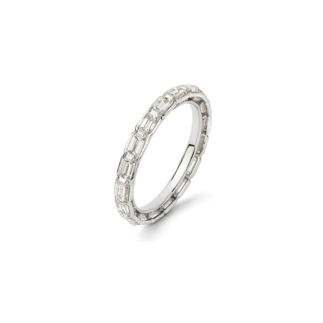 Alliance en or blanc, tour complet, avec diamants taille émeraude de 2,2 cts