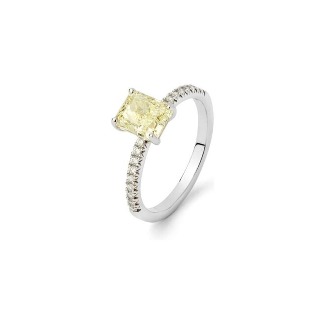 Bague en or blanc avec diamant jaune de 1,6 cts taille radian