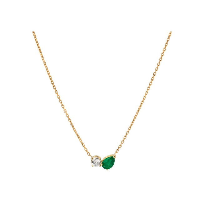 Collier Toi & Moi serti d’une émeraude taille poire de 0,39 ct et d’un diamant GSI de 0,20 ct