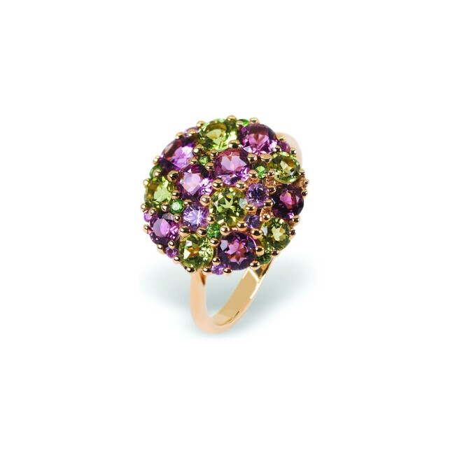 Bague Lombard Joaillier en or rose, péridot, tourmaline rose, tsavorite et saphir rose