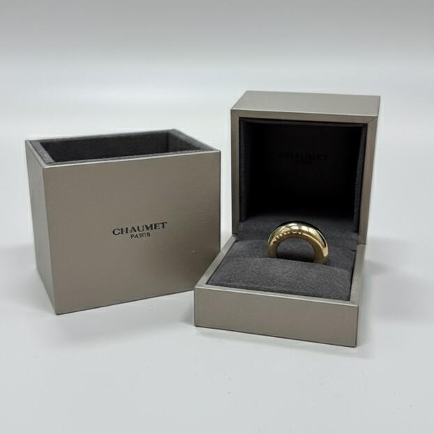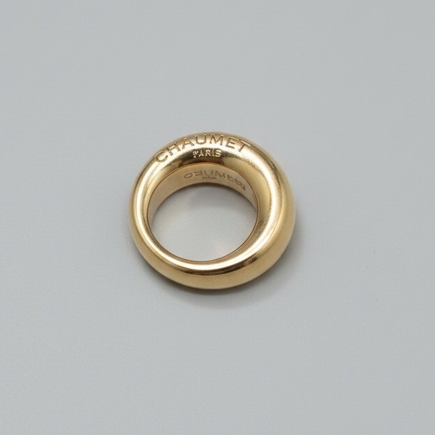 De forme arrondie, épausse et lisse. Design sobre et élégant. Le nom Chaumet est gravé sur le dessus.