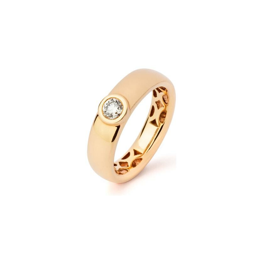 Bague jonc bombée en or rose serti clos, diamant 0.30 ct, taille 54