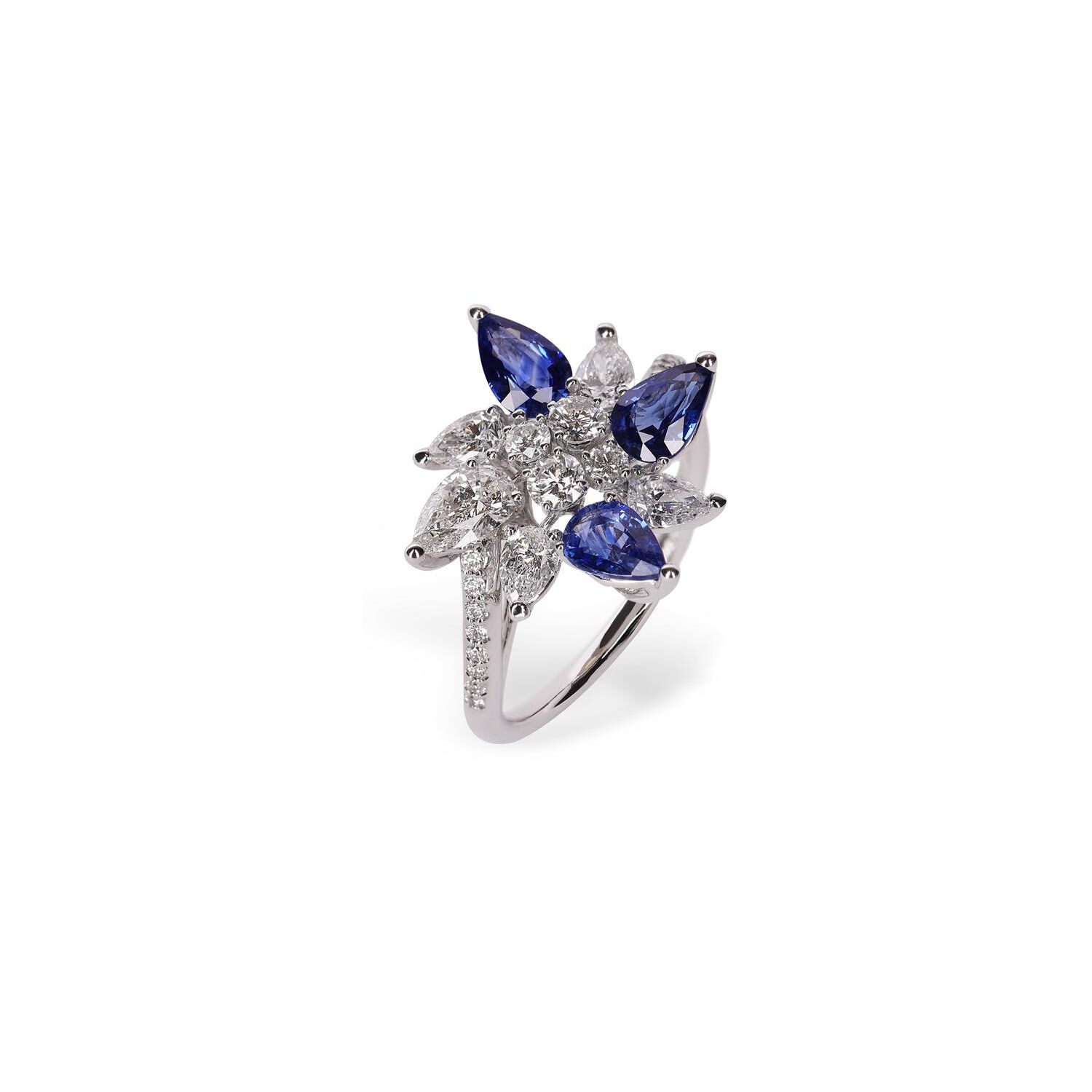 Bague Lombard Joaillier en or blanc, saphirs et diamants
