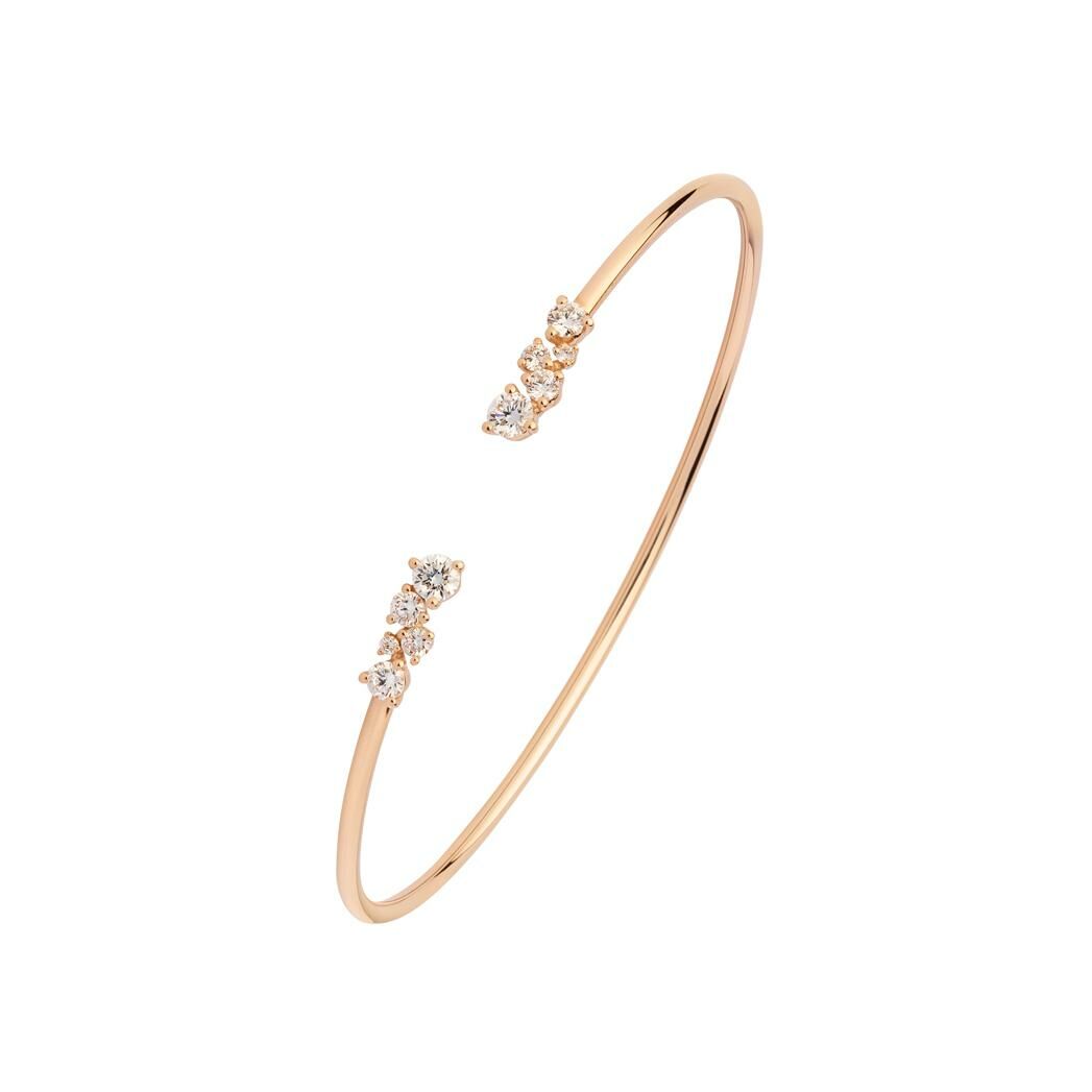Bracelet rigide ouvert en or rose, serti de 10 diamants griffés (0,63 ct)