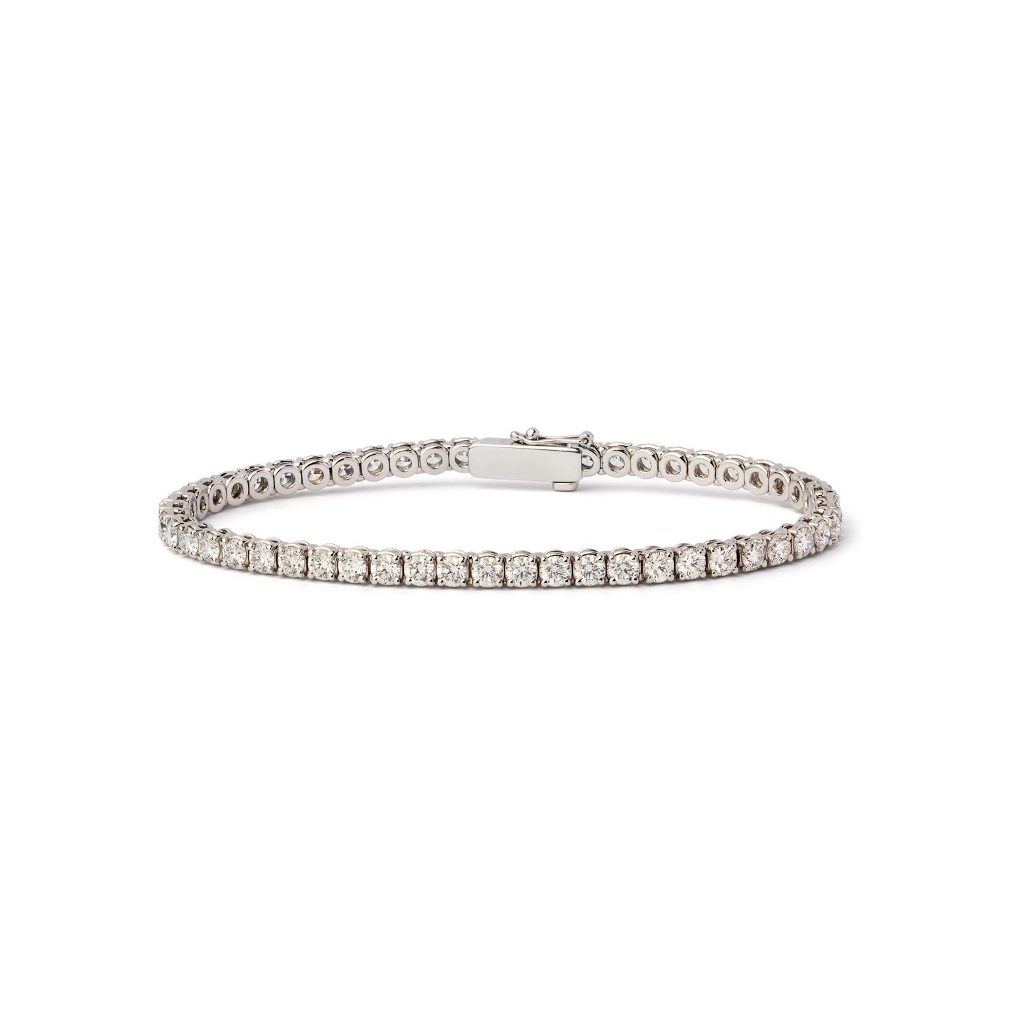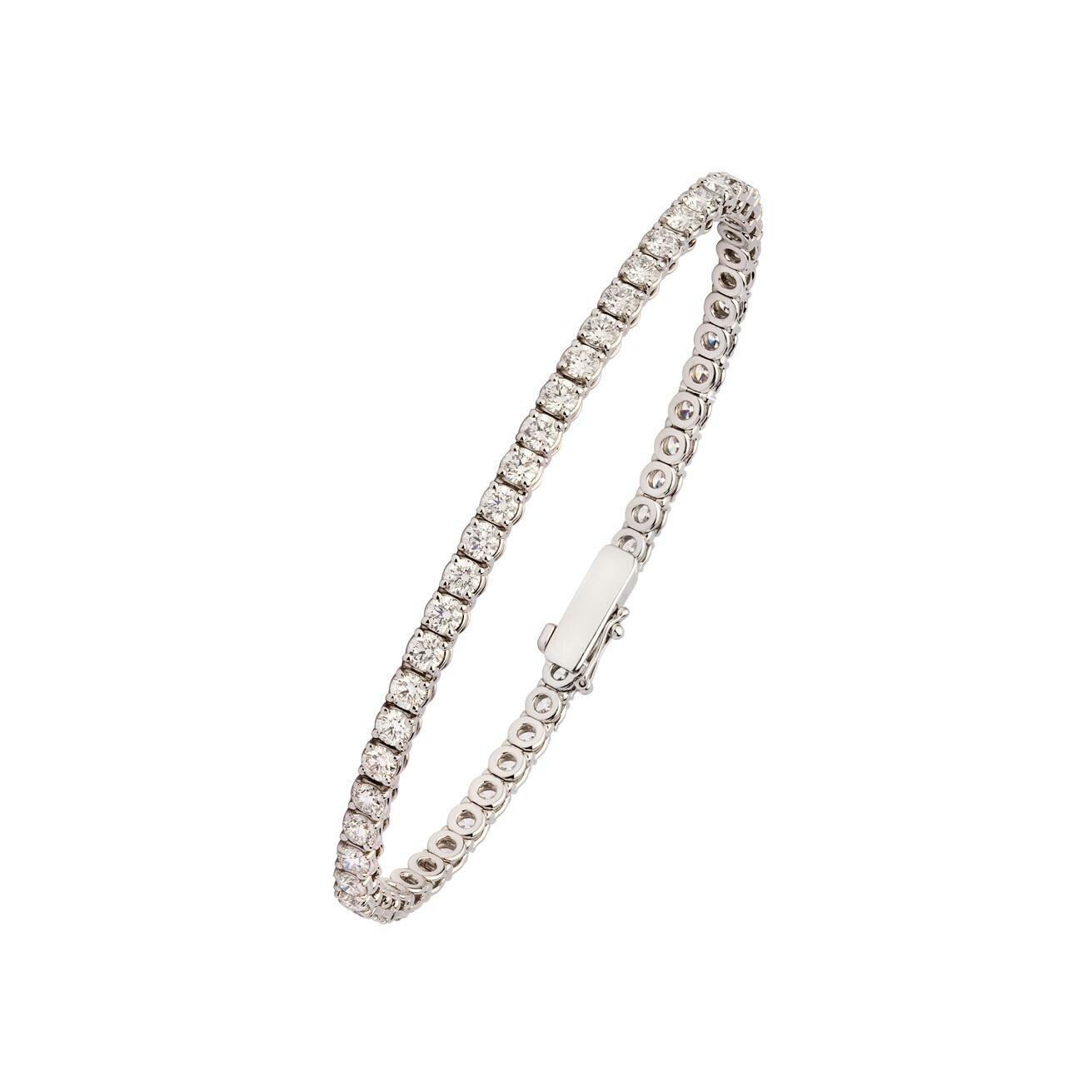 Bracelet rivière en or gris de 17 cm, serti de 51 diamants (total 5,30 ct, 0,10 ct chacun) qualité GSI, sertis 4 griffes