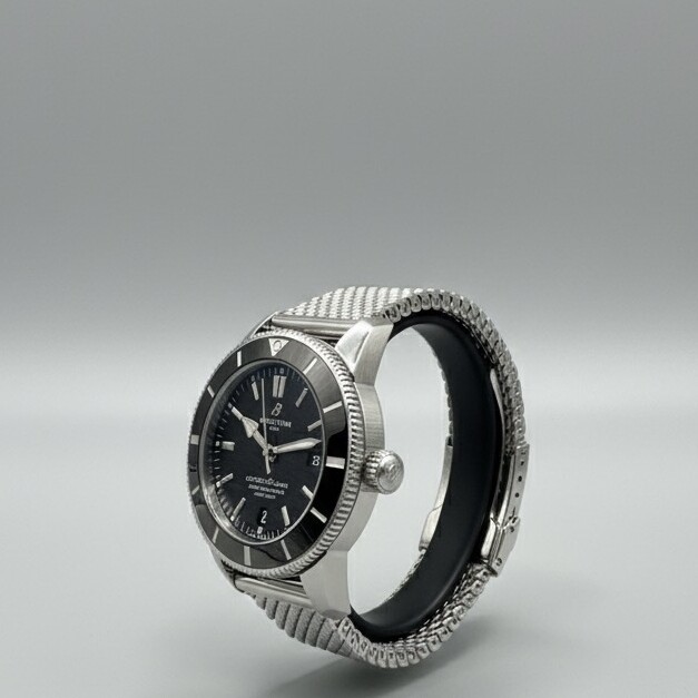 Elle s'inspire de la Superocean d’origine des années 1950, la Superocean Heritage allie légende avec ses aiguilles en triangle et sa lunette unidirectionnelle en céramique noire avec une touche de modernité.