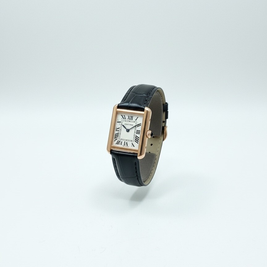 CARTIER TANK SOLO 3168 en or rose 18K et acier, dotée d'un boitier rectangulaire 24/31mm, cadran blanc, chiffres romains