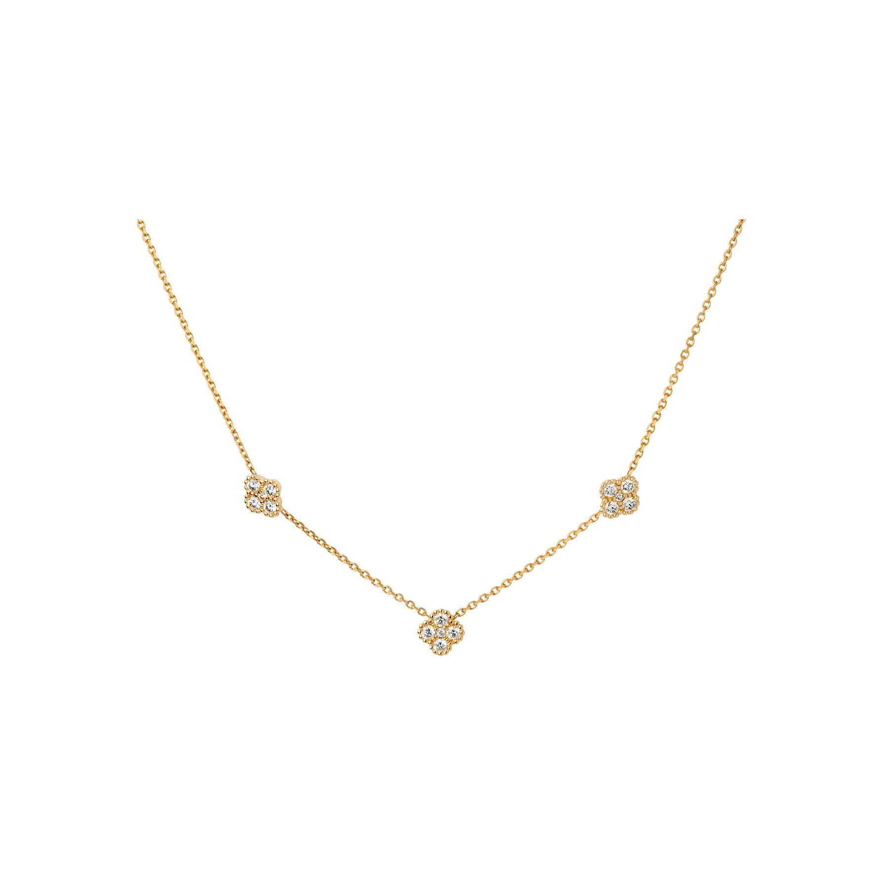 Collier en or jaune avec trois petits trèfles pavés de diamants