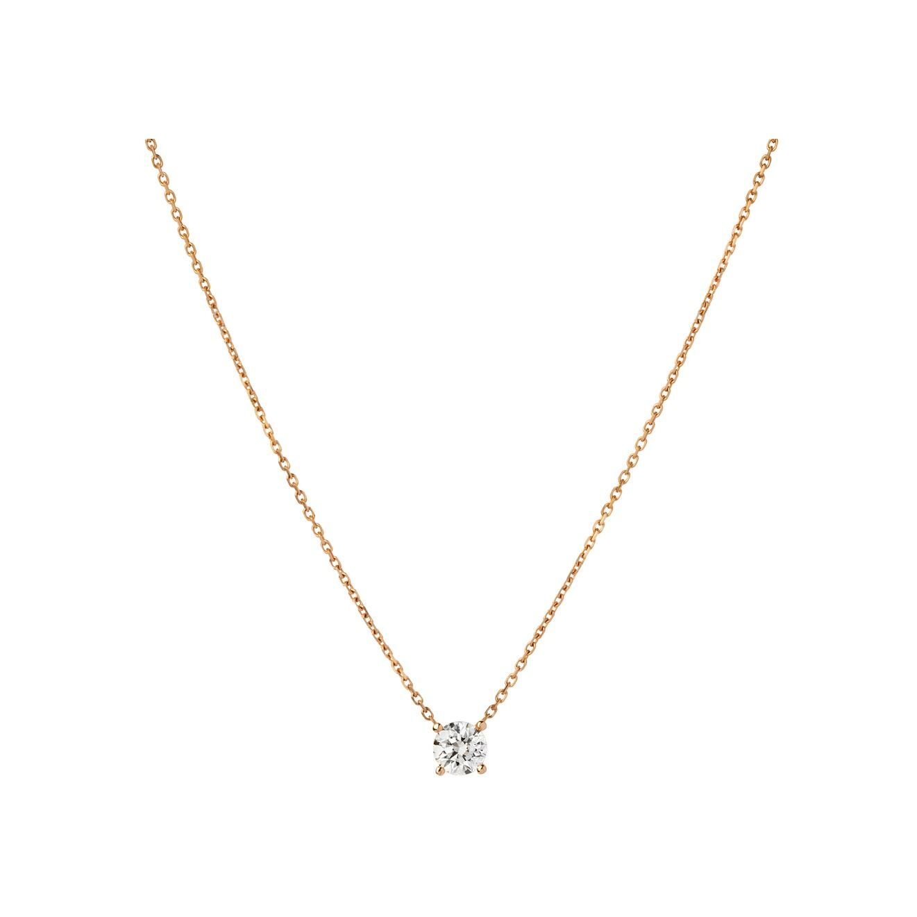 Collier en or rose de 42 cm ajustable, avec un diamant 0,60 ct GSI2 certifié GIA, serti 4 griffes