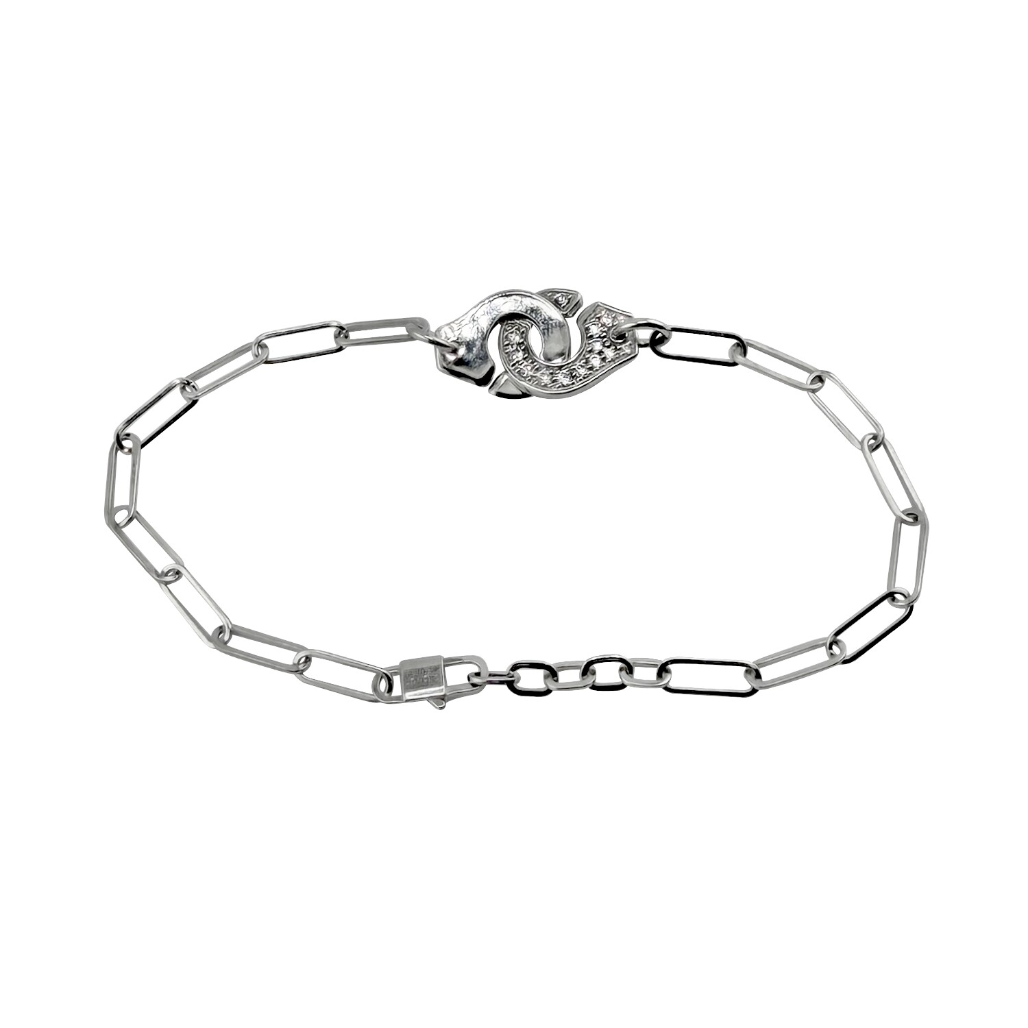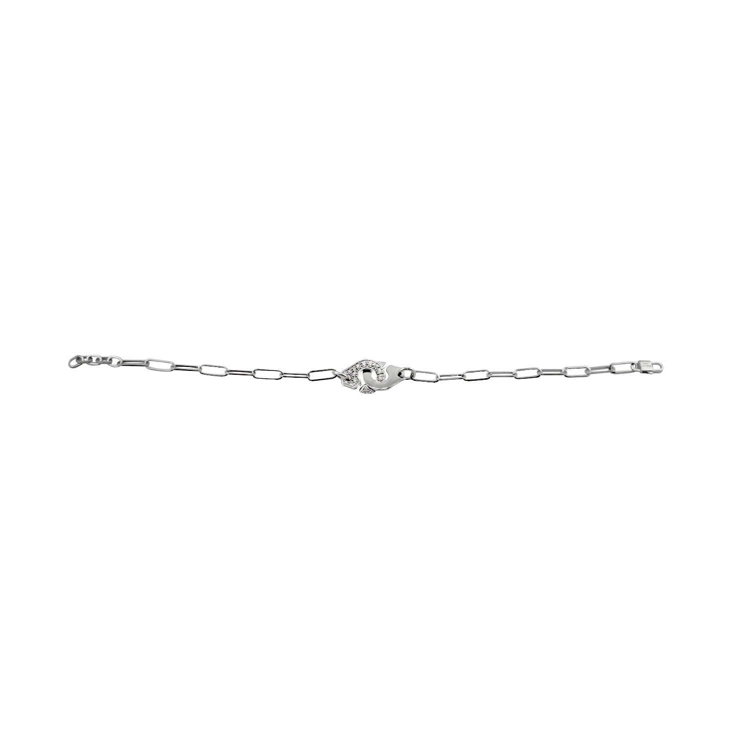 Bracelet Menottes Dinh Van R10 en or blanc 18 carats et demi pavage diamants 0.15 cts sur chaîne maille