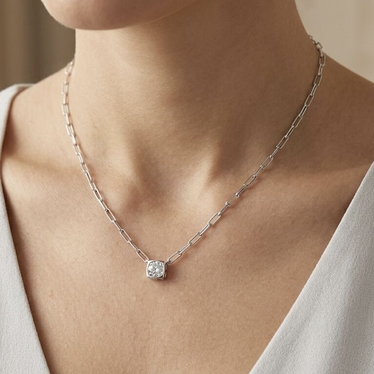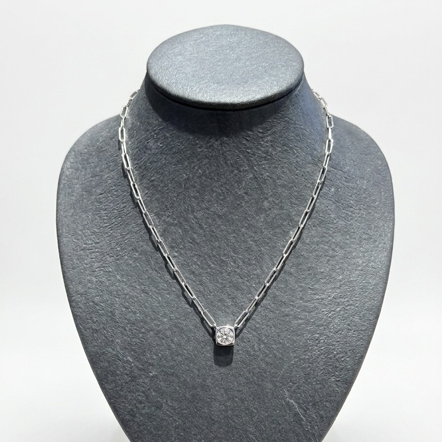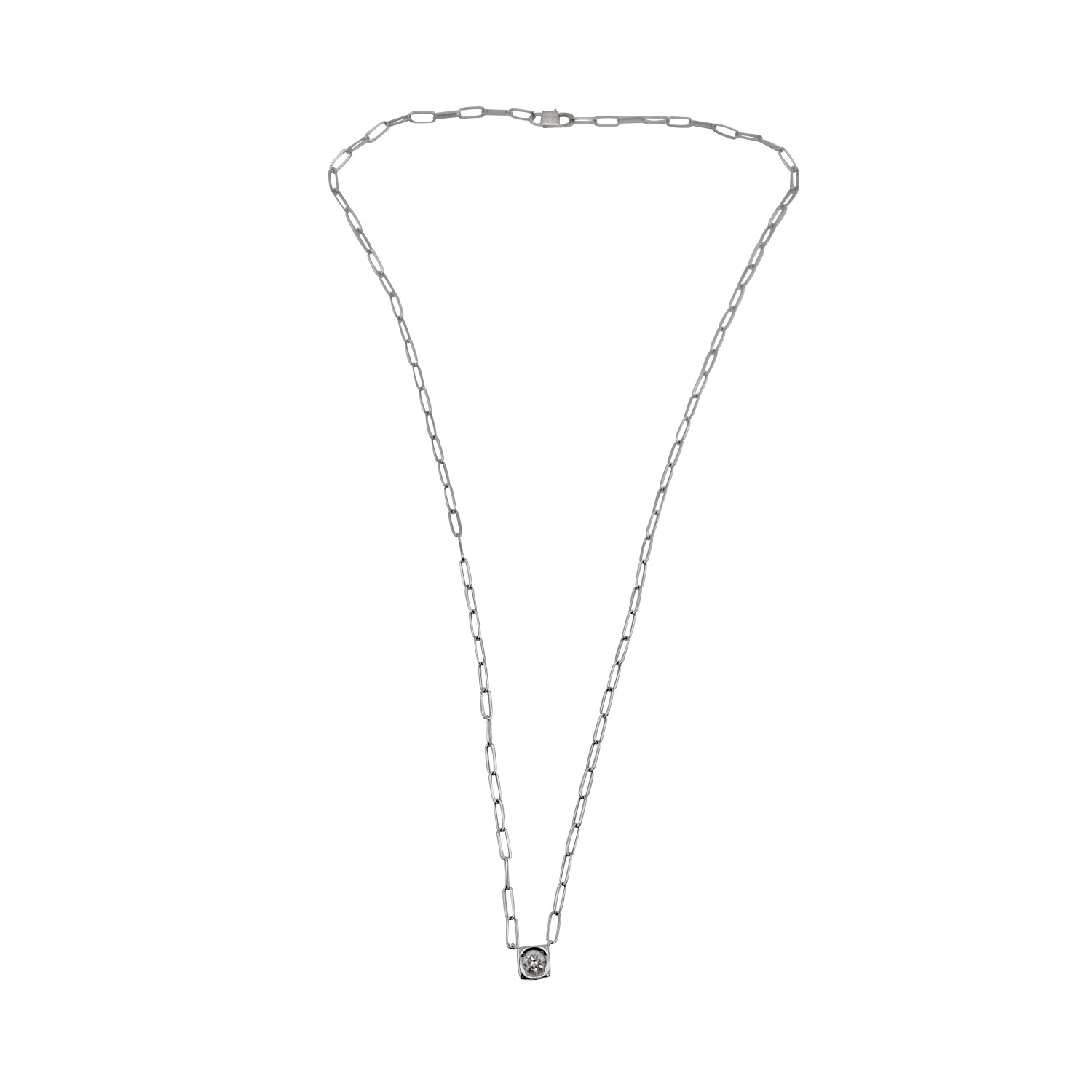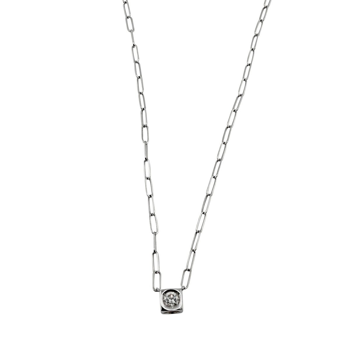 Collier Le Cube Diamant Grand Modèle or blanc 18K et diamant 0.25 carats avec chaine en or blanc.
