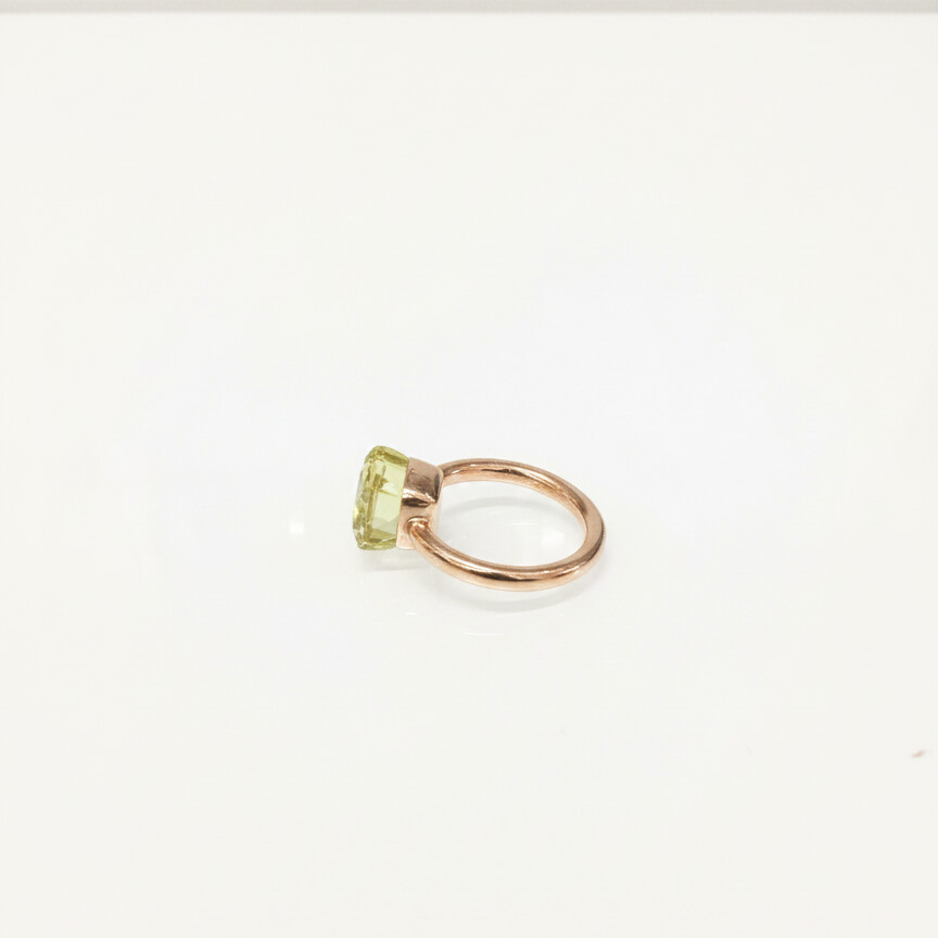 Bague Nudo Lemon Quartz, Corps Or Rose 18Kt, et pierre serti Or Blanc 18Kt.