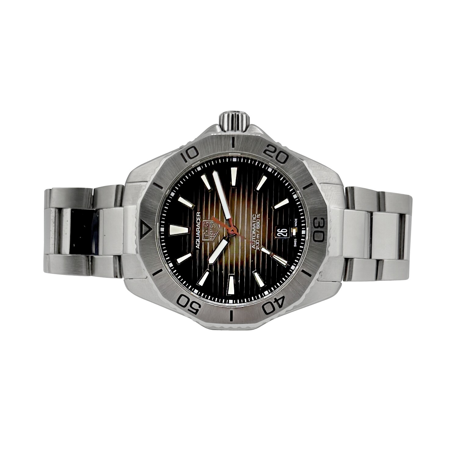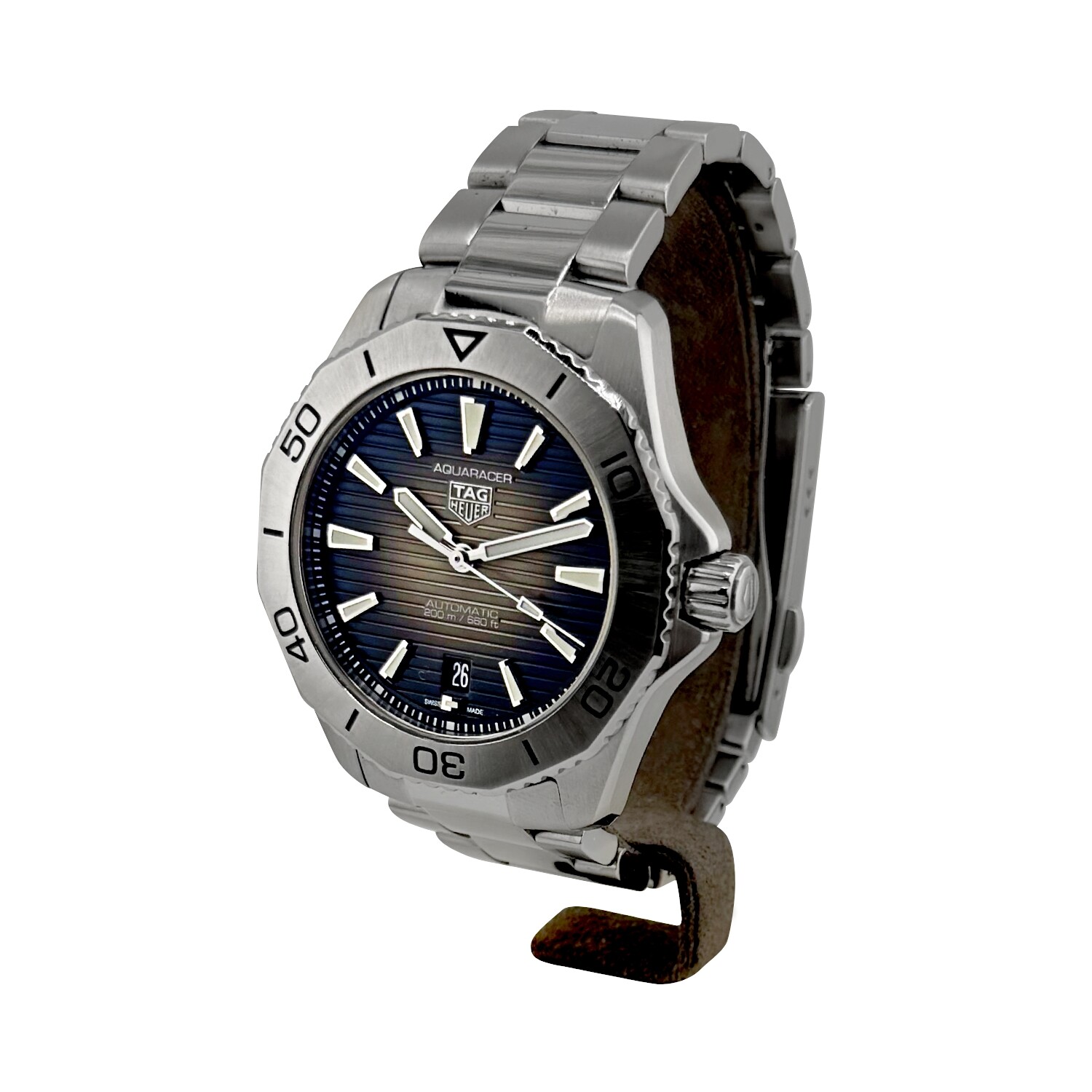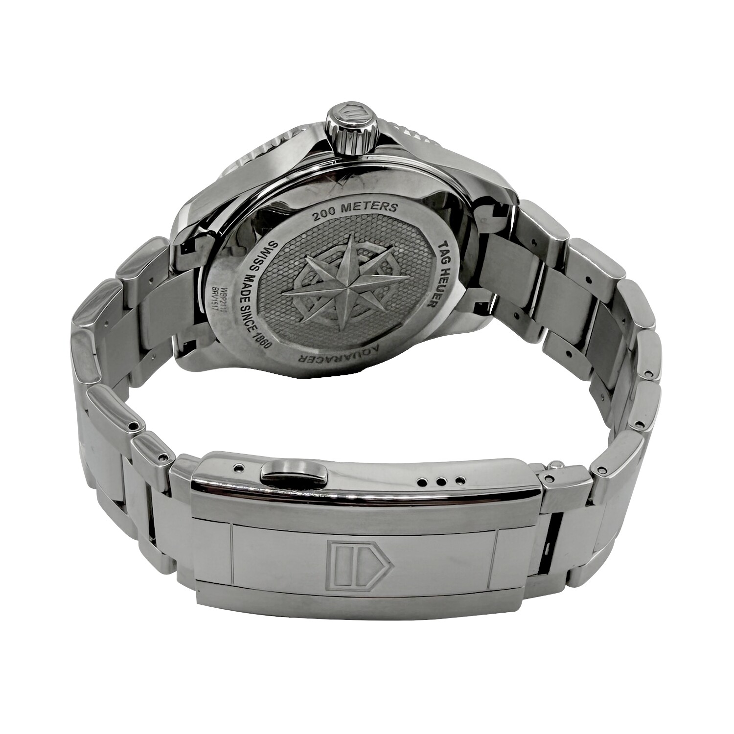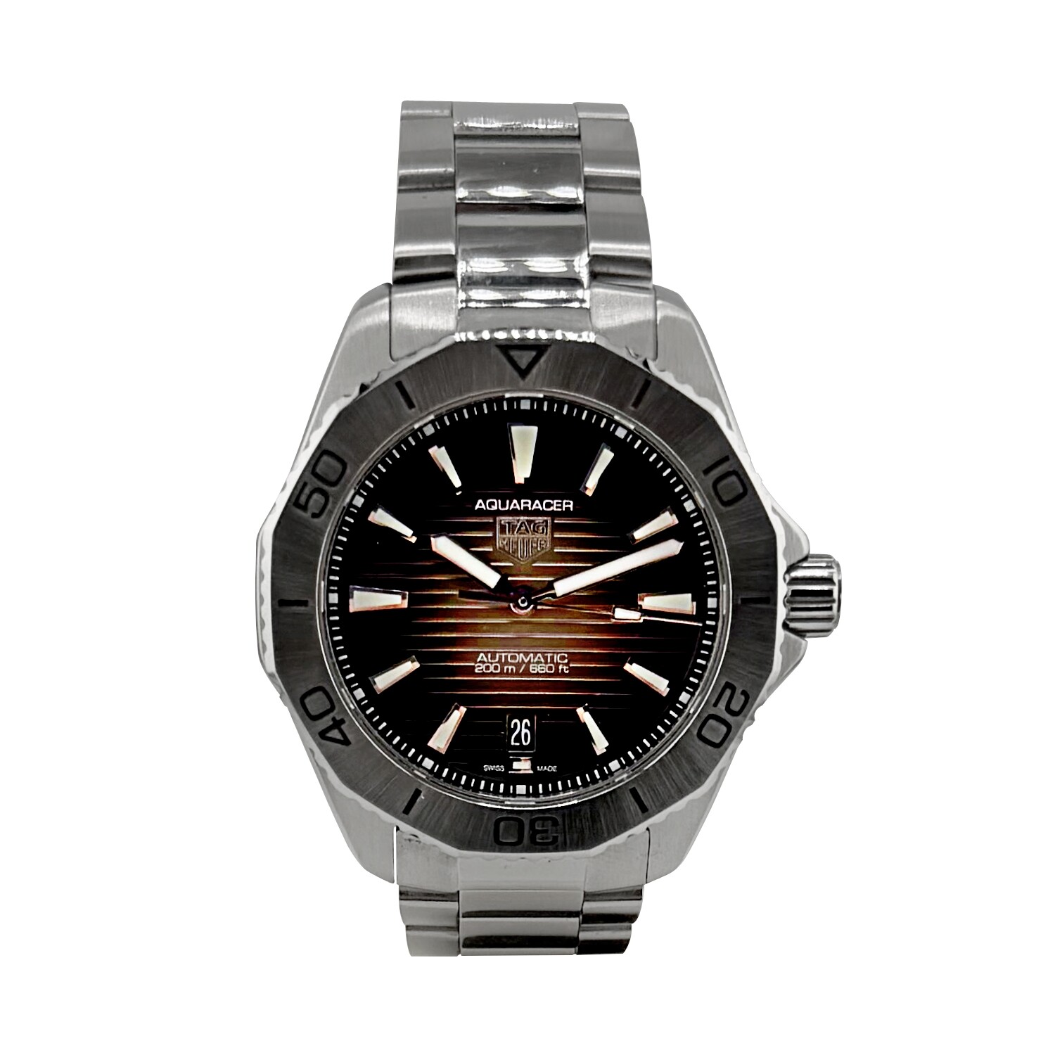 Montre TAG HEUER Modèle AQUARACER Référence WBP2110. Calibre 5. Dotée d'un Mouvement automatique. Elle affiche la Date. Boitier acier 40mm, bracelet acier. Etanche 200M. Cadran noir soleillé.